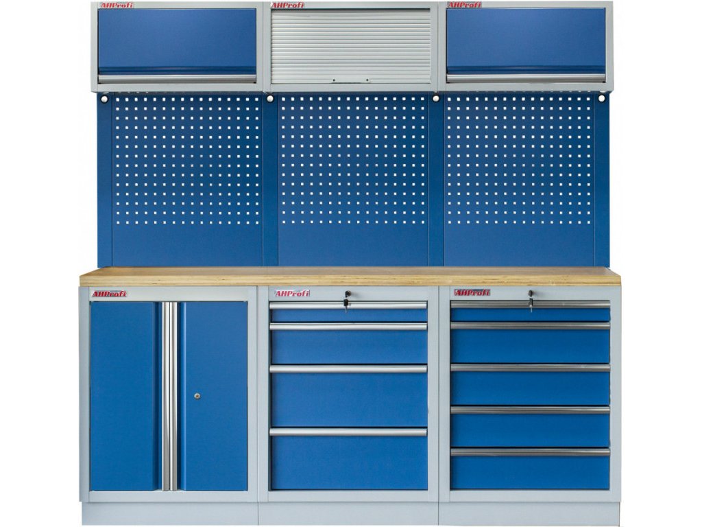Dílenský nábytek PROFI BLUE s dřevěnou deskou zaujme moderním a profesionálním vzhledem. Kombinace modré RAL 5023 a šedé RAL 7035 barvy se bude vyjímat v každé garáži i dílně.