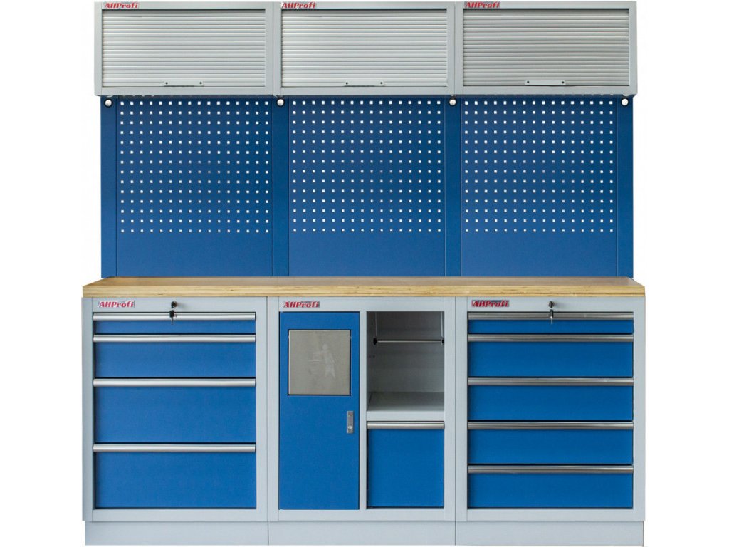 Dílenský nábytek PROFI BLUE s dřevěnou deskou zaujme moderním a profesionálním vzhledem. Kombinace modré RAL 5023 a šedé RAL 7035 barvy se bude vyjímat v každé garáži i dílně.