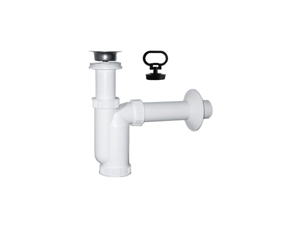 Umyvadlový sifon T-1015 CB.Průměr vpusti umydla s nerzovou mřížkou 39/63 mm, průměr výpusti 40 mm, průtok 0.6 l/s, teplotní odolnost do 95°C.