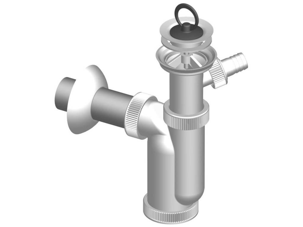 Umyvadlový sifon průměr 40 mm s nerezovou mřížkou průměr 63 mm.Odpad průměr 40 mm a vývod průměr 21.5 mm pro myčku nebo pračku.