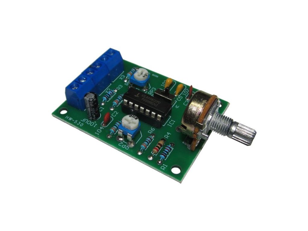 Stavebnice představuje modul signálního generátoru sinusového, trojúhelníkového a obdélníkového signálu v rozmezí 50Hz až 5kHz pro všestranné použití. Srdcem celého generátoru je procesor ICL8038.**Specifikace:**