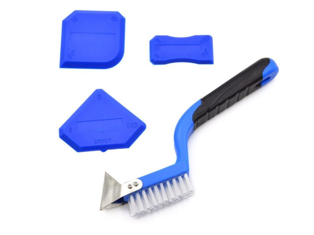 Stěrky na silikon, akryl a tmely jsou určeny pro čisté a hladké dokončení tmelení. Snadno se čistí. Z měkkého elastického materiálu na bázi silikonu. Nepoškozují hrany a nepoškrábou prosklené plochy. V sadě čtyři špachtle v různých tloušťkách a profilech. Přiložený kartáč s tvrdými nylonovými štětinami vám umožní vyčistit a odstranit starý materiál. Navíc je vybaven kovovou škrabkou pro odstranění tvrdých fragmentů materiálu.