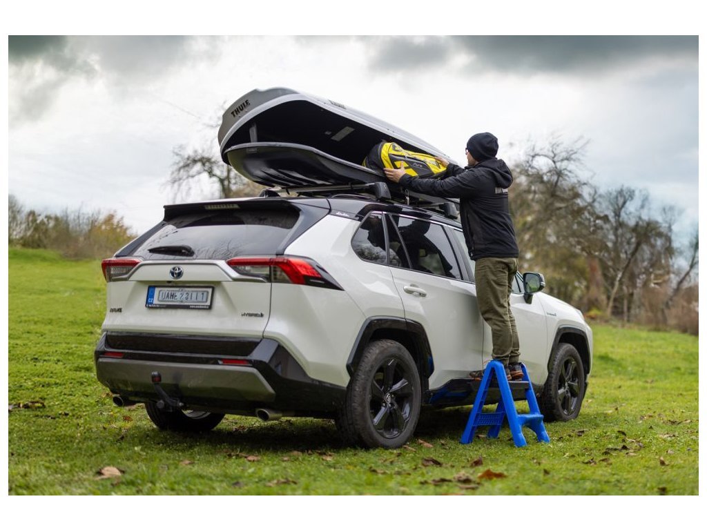TIP: Budou se Vám hodit pokud máte na střeše Vašeho auta umístěný uložný box. Schůdky ve složeném stavu nezabírají místo v kufru auta a tak je můžete mít vždy po ruce. Jednoduše rozložíte a postavíte pod uložný box, nyní jednoduše vytáhnete lyže, kufry a různé předměty ze střešních nosičů a boxů.