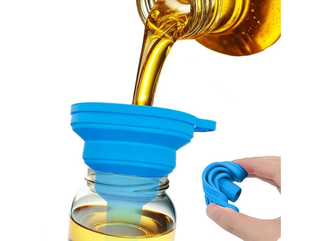 Skládací a kompaktní provedení trychtýře, který lze snadno složit do plochého tvaru, umožňuje uložit ho téměř kamkoliv – ať už je to malá kuchyňská zásuvka, přeplněná skříňka nebo dokonce kempingový batoh.