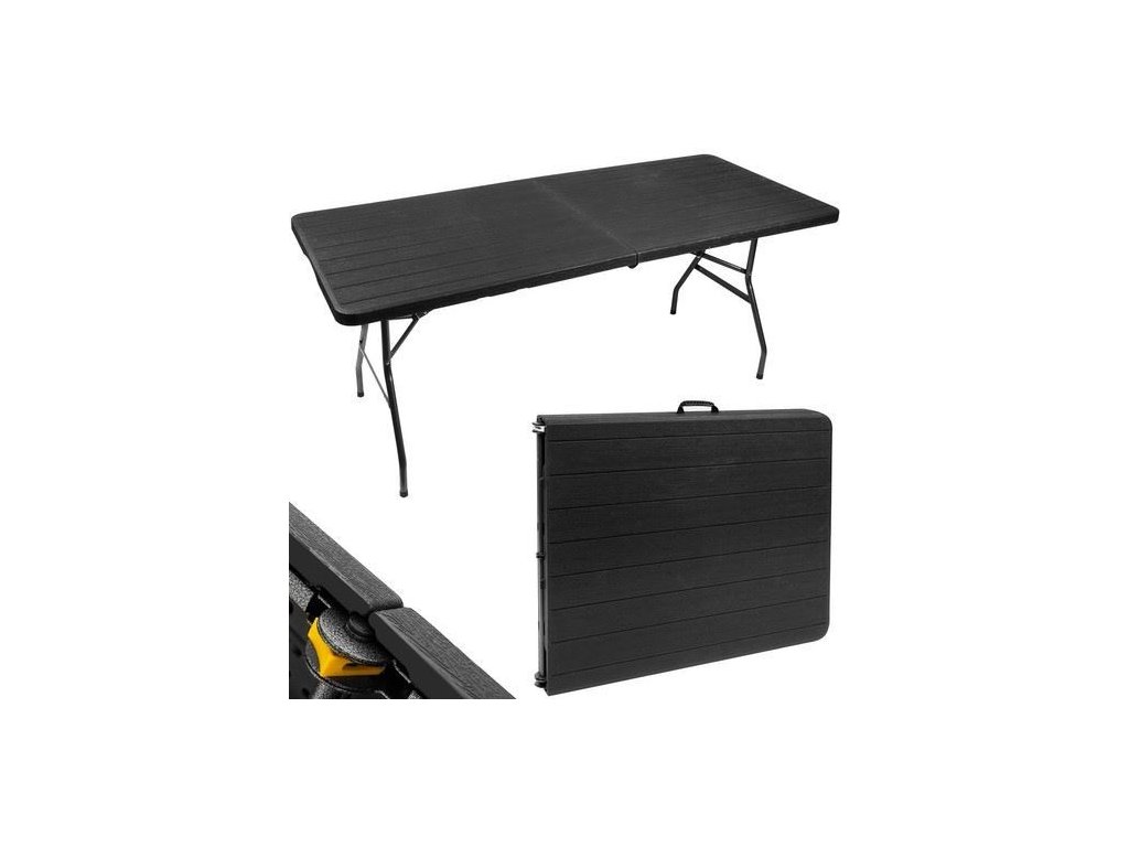 Skládací stůl 180 x 74 cm, černý, Gardlov Velký a kompaktní zahradní stůl o délce 180 cm s funkcí skládání do kufříku. Zajistí úsporu místa a pohodlné nošení. Vhodné pro vnitřní i venkovní použití.Specifikace: