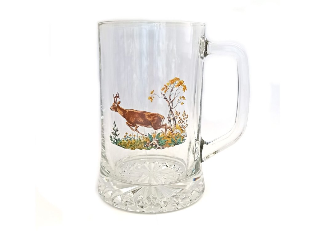 Kvalitní silnostěnný krýgl na pivo s loveckým dekorem, objerm 500 ml.