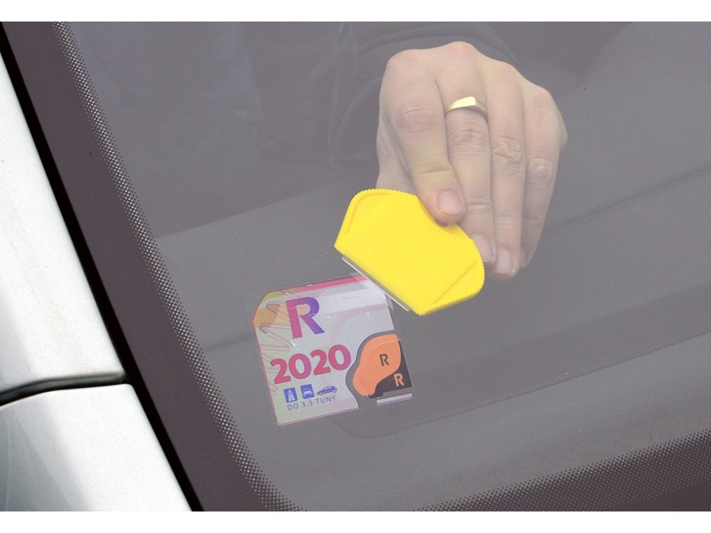 Škrabka na odstranění dálniční známky - snadno odstraní jakýkoliv druh nálepek a známek ze skla.