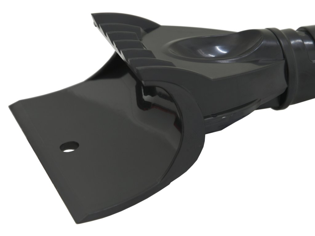 Konstrukce samotné škrabky je doplněna o chránič „vlnku“ chránící ruce před popraškem oškrábaného sněhu a ledu.
