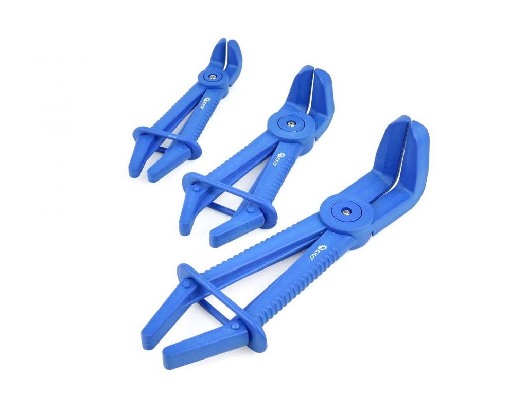 Když máte po ruce tuto sadu škrtících kleští, nemusíte vypouštět kapalinu při manipulaci s jakýmkoliv systémem, kde lze tyto kleště použít, a zároveň zamezíte úniku kapaliny z těchto systémů. Tyto škrtící kleště na hadice se používají například při výměně palivového filtru, manipulaci s hadicemi paliva, servisu chladiče a manipulaci s hadicemi chladícího okruhu. Kleště jsou uzpůsobeny tak, že nepřeštípnou ani nezdeformují hadice a nejsou vodivé. Kleště lze samozřejmě používat k sevření kterékoli gumové hadice bez jejího poškození. Kleště jsou zbarveny tak, aby byly dobře viditelné a zabránilo se jejich ztrátám či zapomenutím.