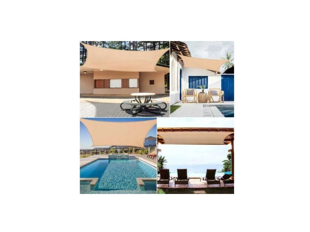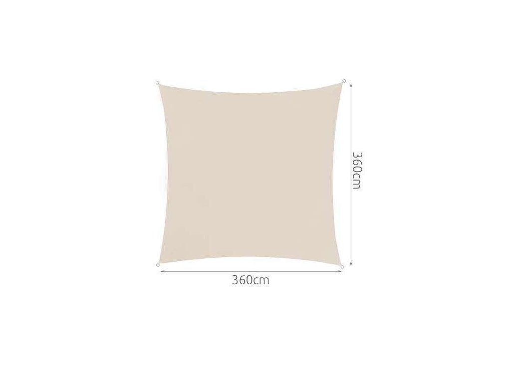 Sluneční clona 3,6x3,6m bežová OCHRANA PROTI UV ZÁŘENÍ - nepropouští dovnitř sluneční světlo. Účinně snižuje teplotu pod plachtou a umožňuje cirkulaci vzduchu, což je v horkých letních dnech mimořádně užitečné.VODĚODOLNÝ - materiál použitý na sluneční plachtě je vodotěsný a proto odolný proti vlhkosti a plísním. Extrémně rychle schne, což je v rychle se měnícím počasí velmi důležité.