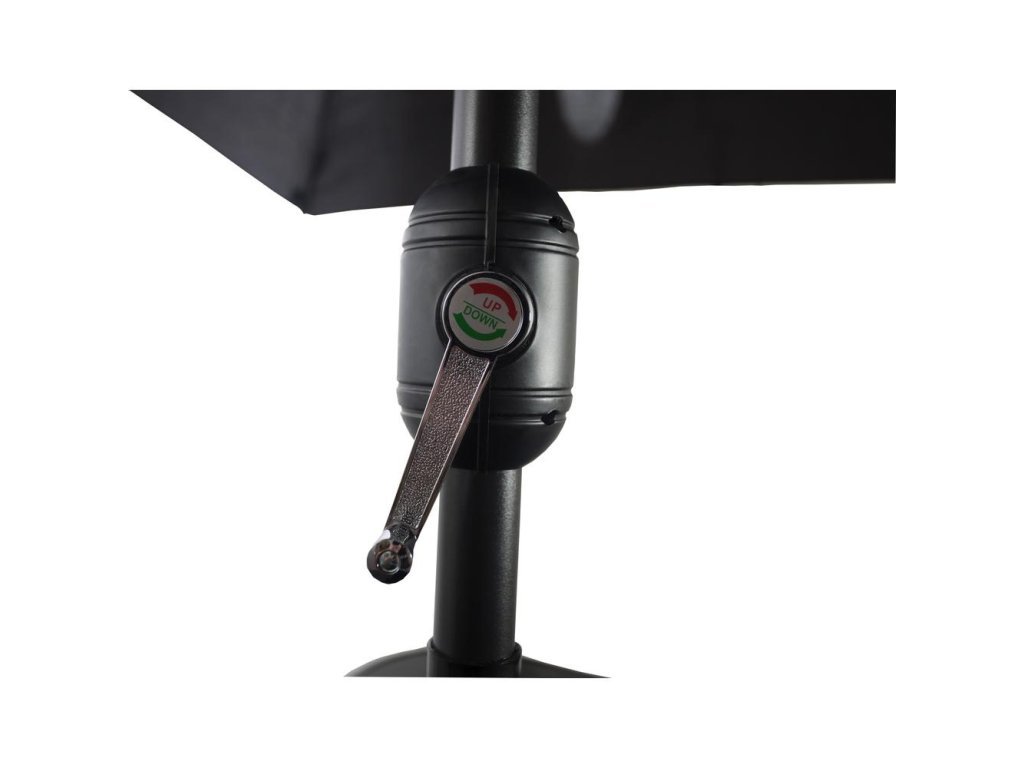 Slunečník Fieldmann FDZN 5007 je elegantní zahradní slunečník s průměrem 3 metry a černým potahem z 100% polyesteru o gramáži 160 g/m². Je vybaven kovovou konstrukcí s osmi žebry, která zajišťuje dobrou odolnost vůči větru. Díky praktické kličce lze slunečník snadno rozkládat a skládat, přičemž je možné nastavit úhel sklonu pro optimální stínění během celého dne. Průměr tyče je 3,8 cm, což umožňuje kompatibilitu s otvory v deskách běžných zahradních stolů.