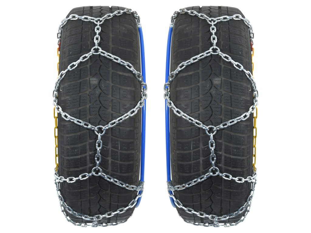 Sněhové řetězy se zesílenými oky, pro osobní vozidla do hmotnosti 2200 kg, splňující evropské normy včetně v Rakousku vyžadované "ÖNORM V 5117".