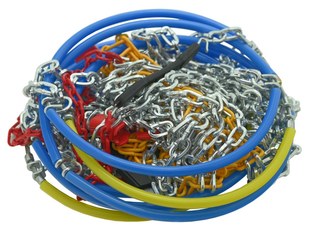 Sněhové řetězy se zesílenými oky, pro osobní vozidla do hmotnosti 2200 kg, splňující evropské normy včetně v Rakousku vyžadované "ÖNORM V 5117".