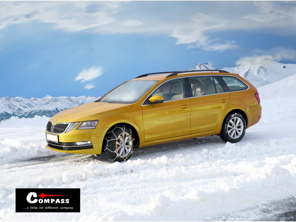 Sněhové řetězy, pro osobní vozidla do hmotnosti 1800 kg, splňující evropské normy včetně v Rakousku vyžadované "ÖNORM V 5117".