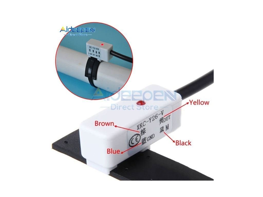 Snímač hladiny XKC-Y26-V bezkontaktní pro plastové a skleněné nádoby Praktický snímač-detektor kapaliny v plastové nebo skleněné nádobě nebo v plastovém potrubí bez nutnosti kontaktu s kapalinou.**Specifikace:**