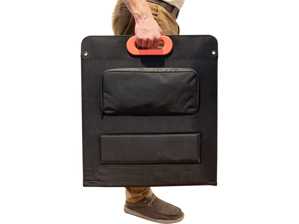 Skládací konstrukce umožňuje pohodlné přenášení. Panel lze složit do velikosti tašky o rozměrech 62×54 cm. To usnadňuje jeho transport i manipulaci. Po rozložení na plnou velikost 125×54 cm poskytuje dostatečnou plochu pro nabíjení s maximálním výkonem 100 W.