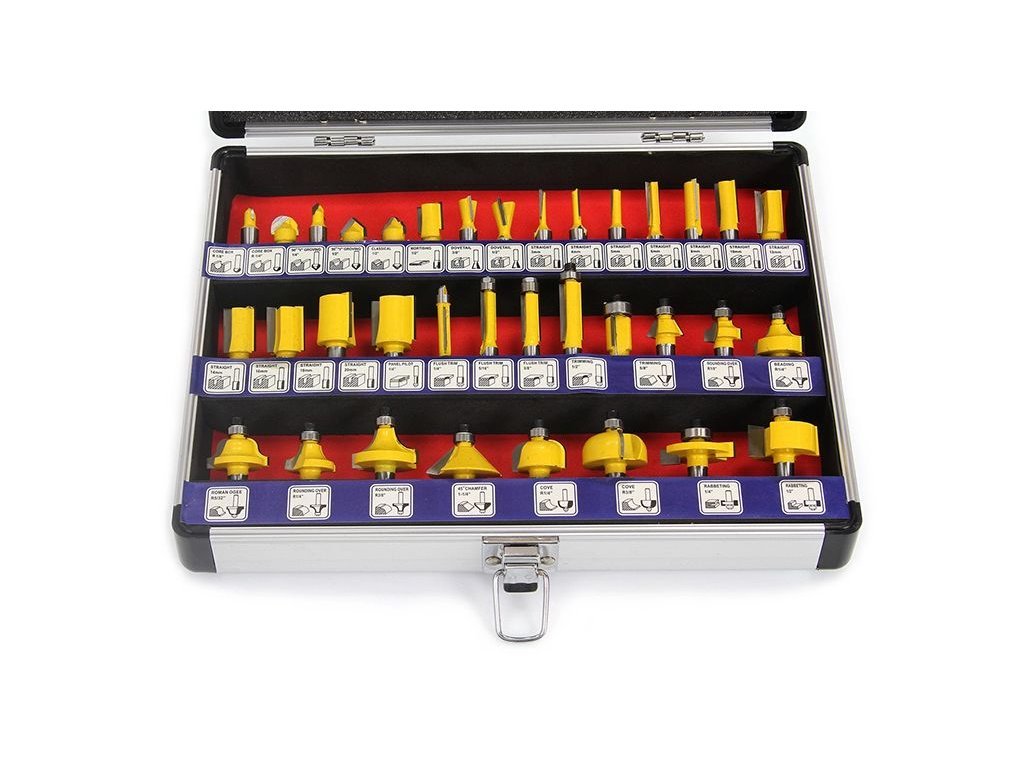 Souprava stopkových fréz umožňuje obrábění materiálů s přesností 0,08 mm. Rozmanitost tvarů způsobuje, že frézky jsou široce používány v truhlářských dílnách specializovaných na přesné zpracování dřeva. Fréza má upnutí na vřetenu o průměru 8 mm. Vybrané frézy jsou opatřeny vodícím ložiskem, které snižuje tření a velmi tvrdou čepelí z vysokorychlostní oceli HSS. Každá fréza má své vlastní označené místo v přehledném pořadači praktického kufru.