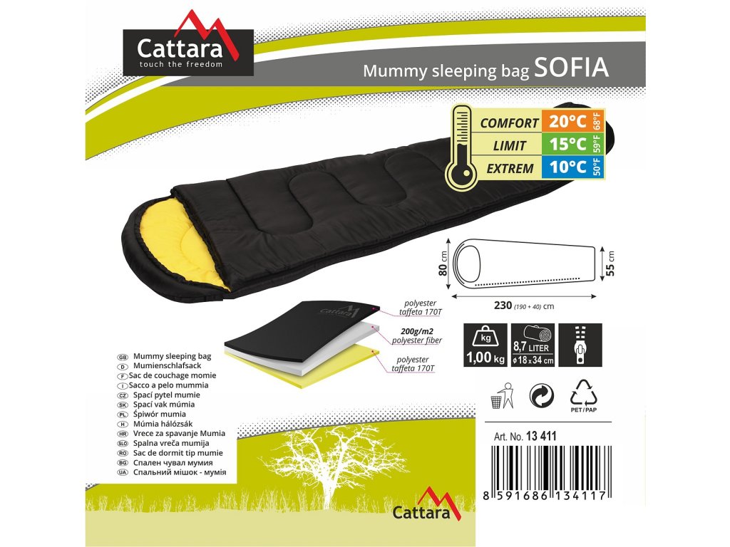 Spací pytel mumie Sofia, je spacákem, který dokonale kopíruje tělo a má tak nejlepší tepelně izolační vlastnosti a je vybaven ztahovací kapucí chránící hlavu.