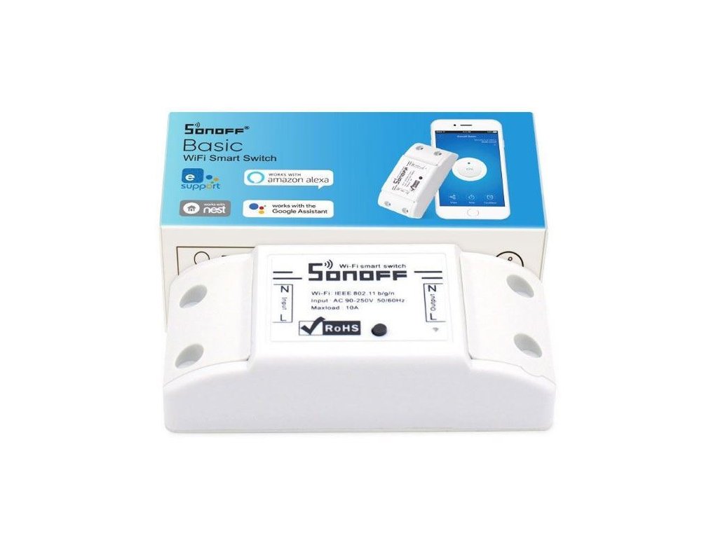 Wi-Fi spínače Sonoff jsou určeny k ovládání elektrických spotřebičů vzdáleně přes internet. Využívají cloudového prostředí Amazon Web Services (AWS) pro zabezpečené připojení do internetu a ovládání pomocí připojené aplikace eWeLink z mobilního telefonu (Android i iPhone) odkudkoliv na světě. Aplikace eWeLink a služby spojené s provozem vypínačů jsou poskytovány zdarma. Napájení je řešeno přímo z230 V a výstupem (rovněž 230 V) lze ovládat spotřebiče až do zátěže 10 A. <BR/><BR/>**Základní popis:** <BR/>Press ON/OFF – Zapnutí a vypnutí stisknutím tlačítka <BR/>Remote ON/OFF – Zapnutí a vypnutí na dálku odkudkoliv na světě pomocí aplikace eWeLink, která je dodávána a jejíž používání je vždy zdarma <BR/>Sync Status – Stav spínače (zapnuto/vypnuto) je v aplikaci eWeLink zobrazován v reálném čase bez ohleduna to, jakým způsobem došlo k přepnutí vypínače (stisknutím tlačítka, na dálku, časovačem, programem, chytrou scénou...) <BR/>Timing – Neomezené možnosti programovaní vypínače (časovač, pravidelné zapínání a vypínání v určitých intervalech, odpočet času...) <BR/>Share Control – Sdílení spínače s více uživateli (například s ostatními členy domácnosti) <BR/>Smart Scene – Chytré scény - programování vypínačena základě událostí z jiných zařízení (například rozsvícení světla po otevření dveří, zvýšení teploty a podobně) <BR/>Scene – Scény – Hromadné operace více zařízení najednou <BR/>Voice Control – Hlasové ovládání - Snadná integrace s Amazon Alexa, Google Home <BR/>Inching - automatické vypnutí po určité době od zapnutí (v rozmezí 0,5 s až 1 hodina) <BR/><BR/>**Specifikace:** <BR/>Napájení 90-250V AC <BR/>Max. zátěžovýproud: 10A <BR/>Max. Příkon: 2200W <BR/>Stand-by spotřeba <0,5W <BR/>WiFi Standard: 802.11 b/g/n <BR/>WiFi zabezpečení: WPA/WPA2 <BR/>Material: ABS VO - odolný vůči hoření <BR/>Kanál: 1<BR/>Provozní teplota: 0° - 40°C <BR/>Provozní vlhkost: 5% - 90% <BR/>Rozměry: 88 x 38 x 23 mm (D*Š*V) <BR/>Doplňkové parametry