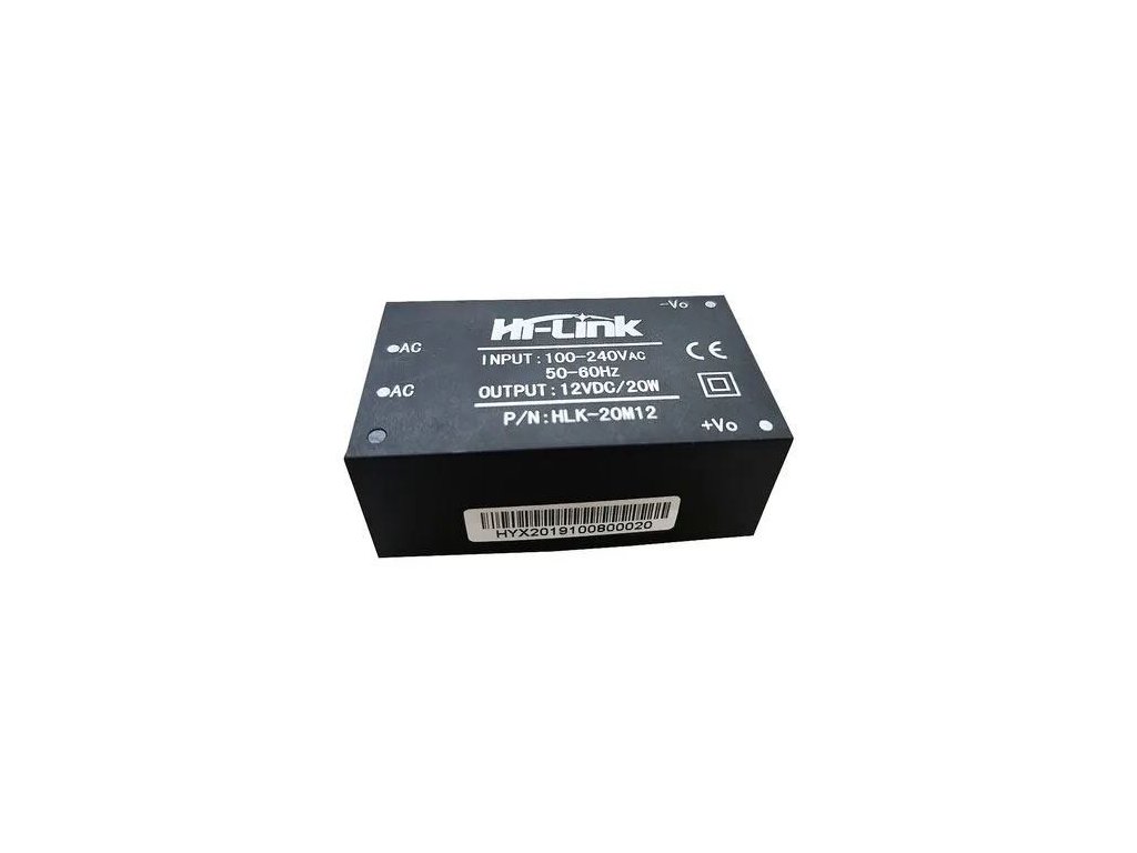 Spínaný zdroj Hi-Link HLK-20M12 20W 12V/1,6A Napájecí napětí: 100-240VAC/0,4AVýstupní napětí: 12VDC/1,6A (20W)