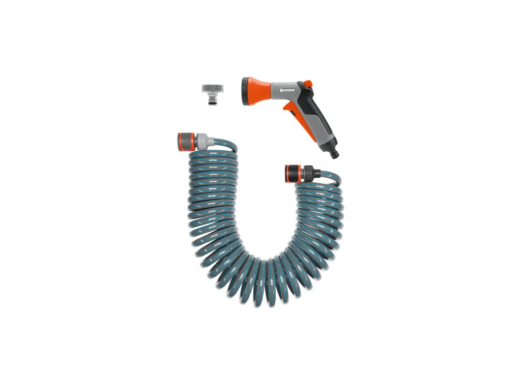 Tato sada spirálové hadice a postřikovací pistole je vhodné řešení pro zalévání rostlin na balkónech, terasách nebo menších zahradách.