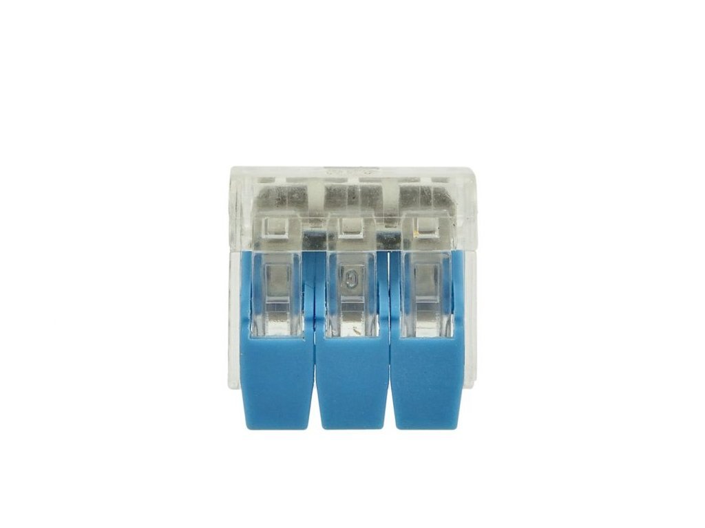 Svorka disponuje třemi svěrnými místy pro propojení vodičů. Průhledné pouzdro umožňuje okamžitou vizuální kontrolu správnosti zapojení a uložení vodičů. Zkušební otvor slouží pro bezpečnou kontrolu napětí bez nutnosti rozpojování. Páčkový mechanismuszajišťuje rychlé i opakované použití - odizolované vodiče lze jednoduše zasunout do svorky a sklopit páčku a naopak vyjmout po odklopení páčky.