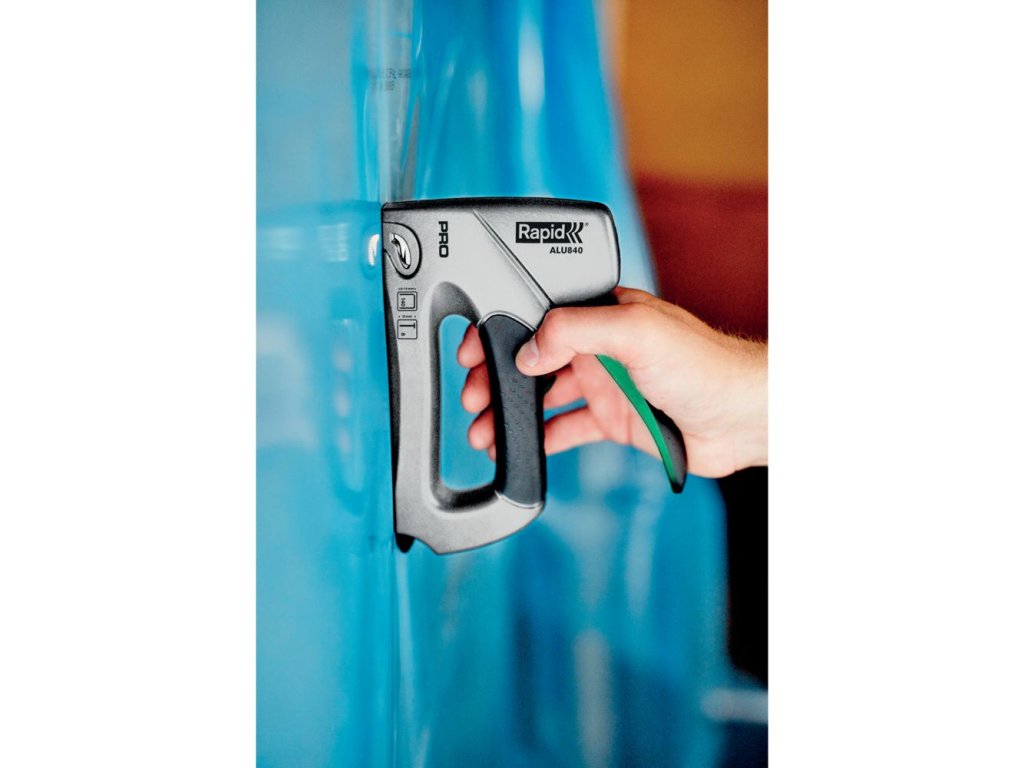 ALU840 je vhodná pro množství náročných prací, včetně upevňování tenkých desek nebo sololitu, nebo materiálů, jako jsou izolace, izolace proti vlhkosti, plastové obalové fólie, lepenka nebo jiné díly, které vyžadují vysokou kvalitu upevnění.