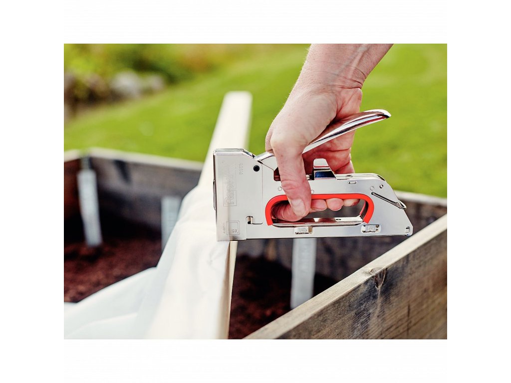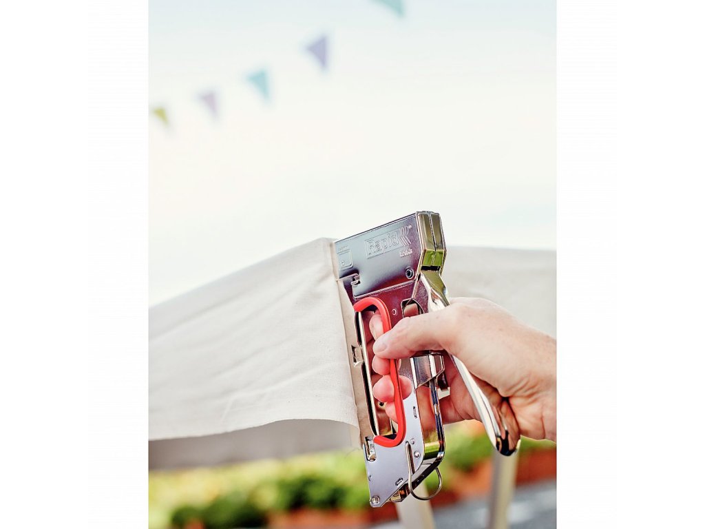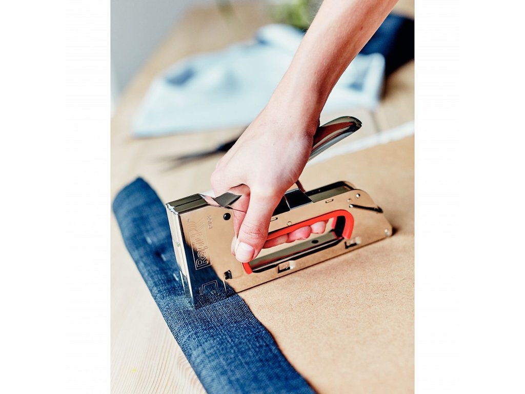 Tento model je dokonalý pro uživatele s menšíma rukama a dá se použít pro různé úlohy, včetně čalounění nábytku nebo upevňování tenčích látek, kůže, papíru, štítků nebo citlivých textilií.