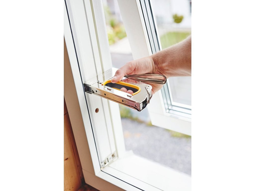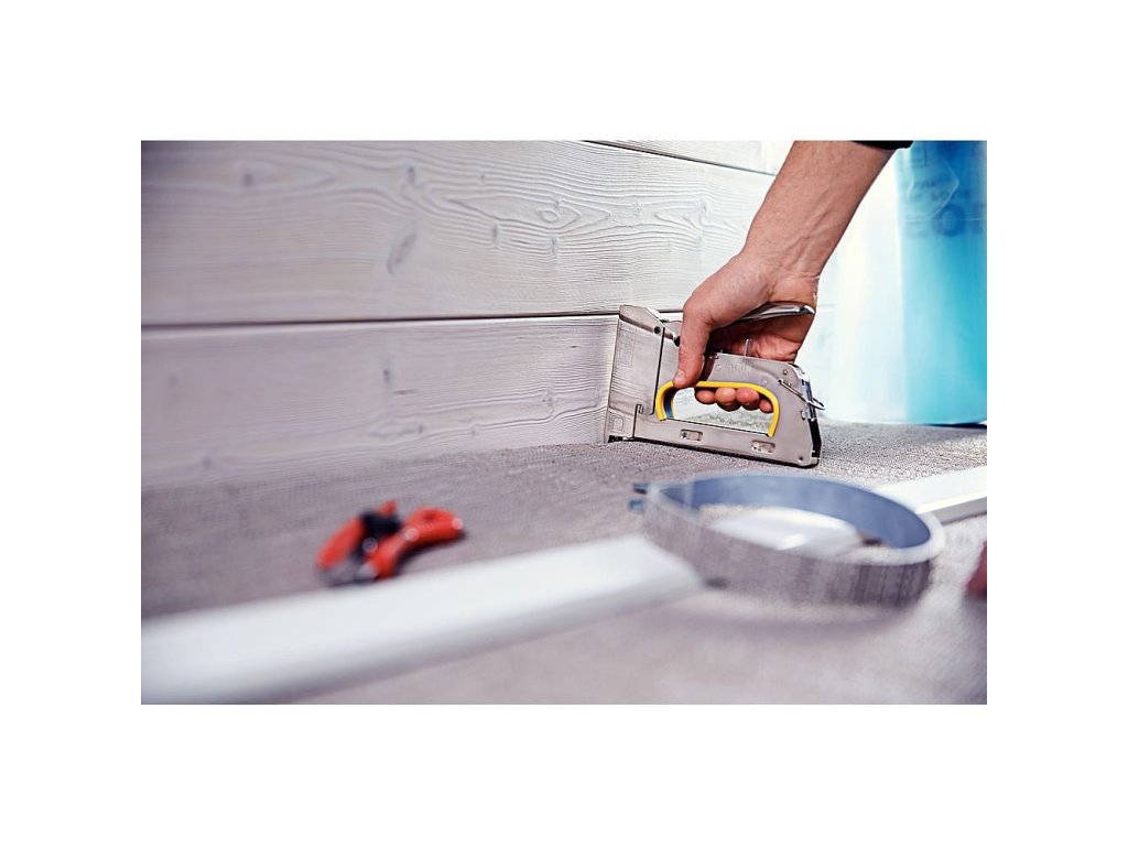 Je vhodná pro množství náročných prací, včetně upevňování těsnících pásek, textilu, koberců, kůže a jiných citlivějších textilií, zvláště na nerovné nebo nepohodlné pracovní ploše.