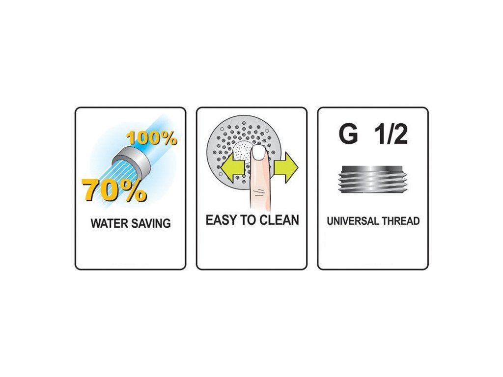 Hlavice je opatřena mechanizmem pro úsporu vody. Proti hromadění vodního kamene slouží gumové kanálky.