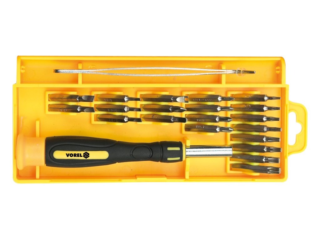 Šroubovák hodinářský + bity 22ksů, vyrobené z kvalitní oceli CrV6150, rukojeť z měkčeného plastu s protiskluzovou vrstvou a pinzetou. Vše uložené v přehledné, praktické krabičce.