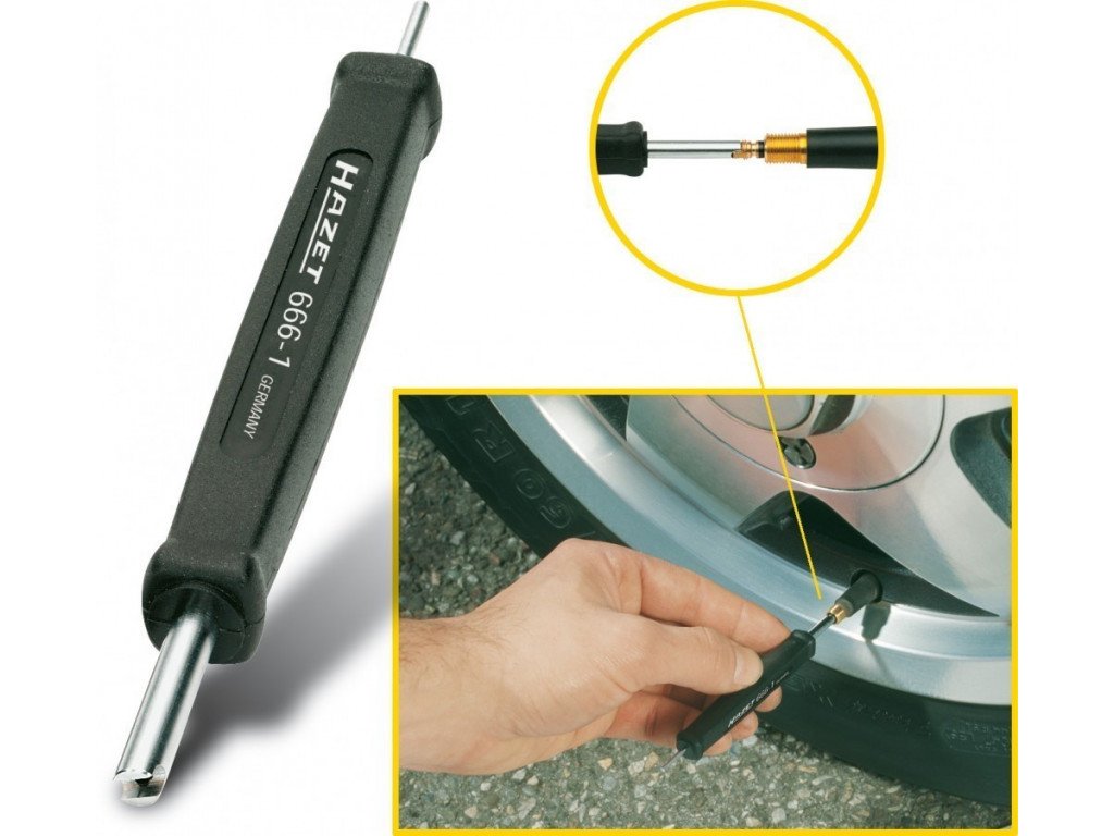 - Pro zašroubování a vyšroubování ventilové vložky do ventilu pneumatiky