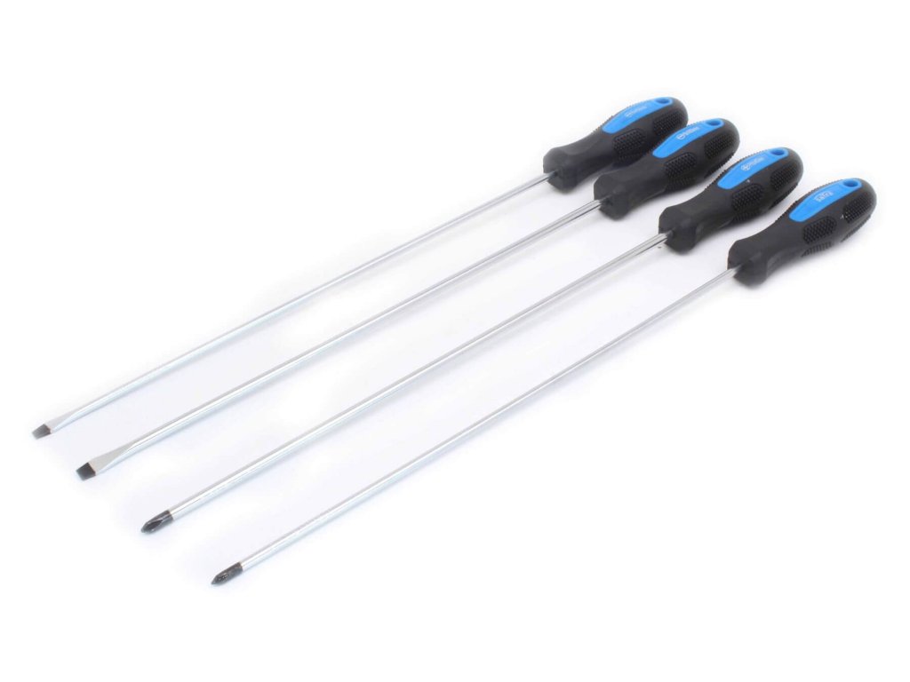 Šroubováky extra dlouhé 450 mm, ploché 5 a 6 mm, křížové PH1 a PH2, sada 4 ks - SATRA