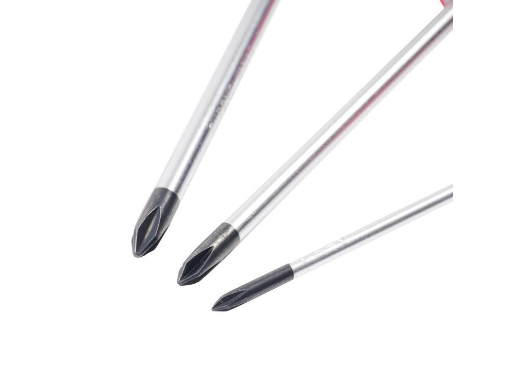 Šroubováky jsou vyrobeny z chrom-vanadiové oceli (CrV) s dodatečně kalenými hroty, což zajišťuje vysokou odolnost proti opotřebení. Magnetické hroty spolehlivě přidržují šrouby a usnadňují montáž i demontáž.