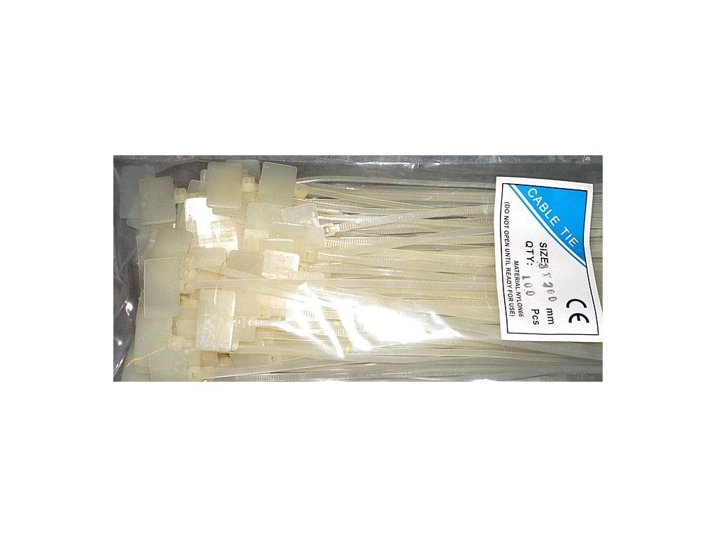 Stahovací páska 3x200mm bílá se štítkem, balení 100ks