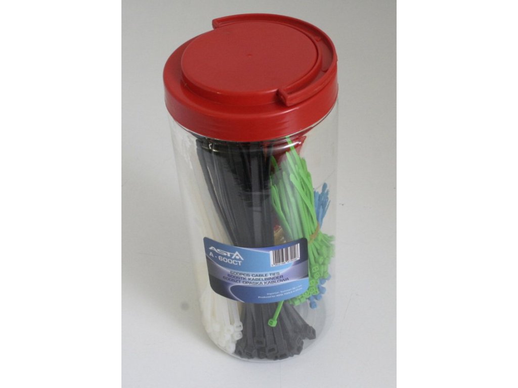 Vázací – zdrhovací pásky univerzální, různé barvy, sada 600 kusů v plastové dóze ASTA A-600CT
