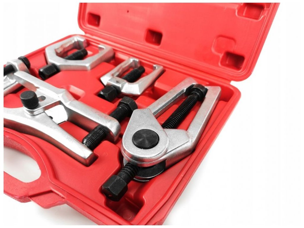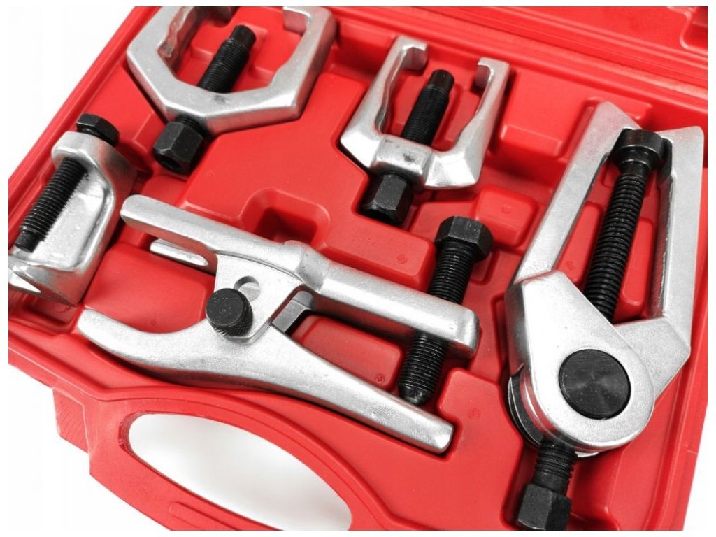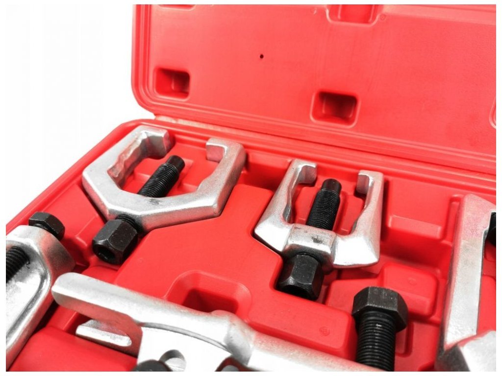 Sada stahováků usnadňuje demontáž nejběžnějších typů řídících pák, spojovacích tyčí a kulových čepů. Stahováky se silnou konstrukcí, čímž se zvyšuje jejich odolnost proti poškození.