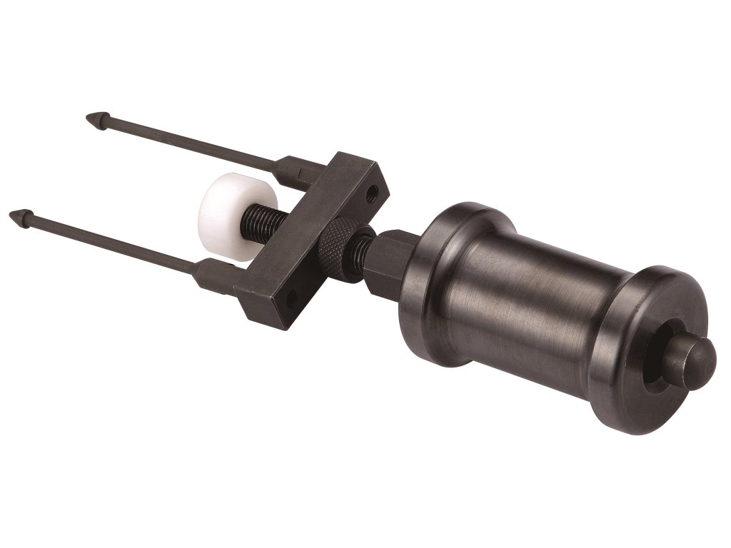 Přípravek se uchytí k hlavě motoru a pomocí 1kg reverzního kladiva se vstřikovač vytáhne (viz obrázek).
