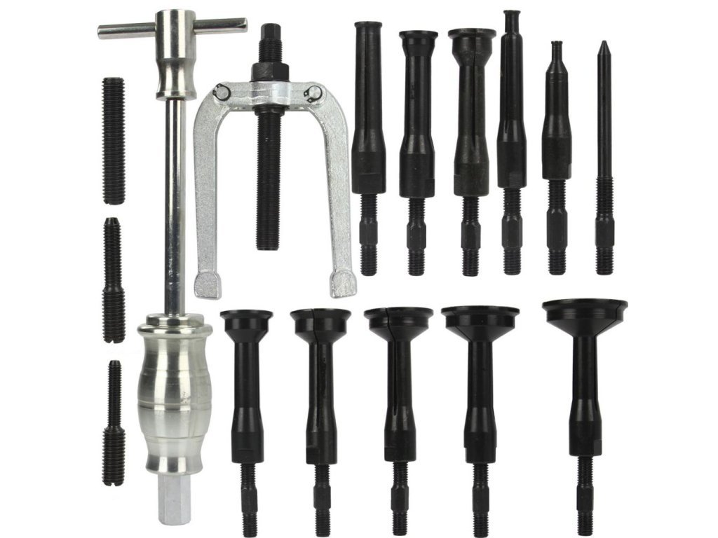 Praktická sada přípravků na demontáž ložisek uložených tak, že je k nim přístup jen z čelní strany. Na reverzní kladivo se našroubuje rozpínací trn s kleštinou a ta se zachytí o vnitřní kroužek ložiska. Pomocí kladiva se pak takto vnitřně upnuté ložisko stáhne.