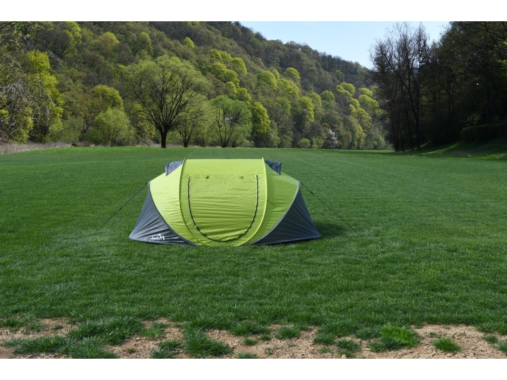 Stan se samorozkládací konstrukcí super quick, s rozměry 230 x 130 x 95 cm, vhodný pro 2 osoby.