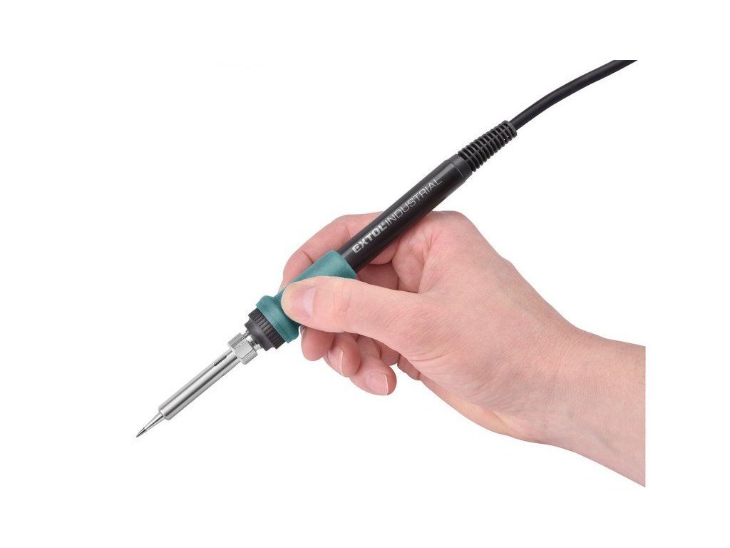 - pogumovaná rukojeť páječky zajišťuje příjemné držení při práci a zamezuje sklouzávání prstů při držení