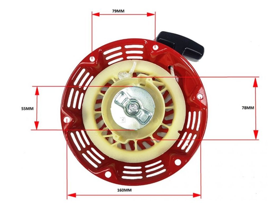 Nový náhradní startér pro většinu čtyřtaktních benzinových motorů, pasuje do většiny strojů a zařízení s kapacitou 2-3,7kW např. do motorů Honda (GX140, GX160 a GX200) a jiné.. Nejčastěji se používají v generátorech, vibračních deskách, čerpadlech, frézách...