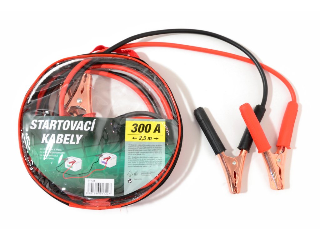 Klasické startovací kabely, barevně označené, se svorkami na akumulátor. Uzavíratelné balení, snadné uložení startovacích kabelů zpět do praktického, na zip uzavíratelného, obalu.