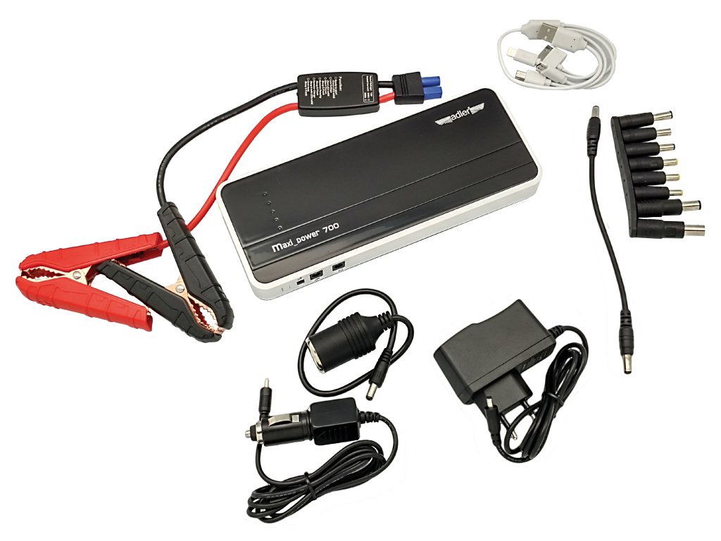 Kompaktní startovací powerbanka, startovací proud 350 A, špičkový proud až 700 A, kapacita baterie 18000 mAh – ADLER MAXI POWER-700