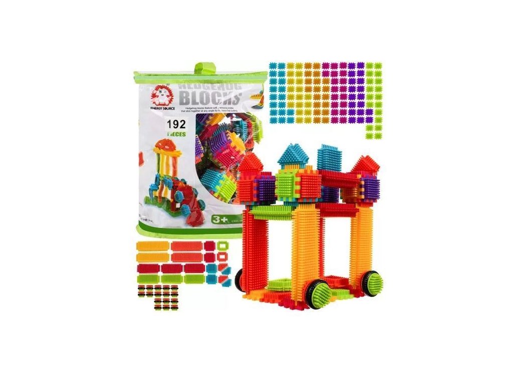 Stavebnice vafloví ježci, 192ks, Kruzzel Celkem je zde obsaženo 192 ks různých konstrukčních prvků, které lze libovolně kombinovat a spojovat. Vše záleží jen na jeho představivosti. Dítě může sestrojit autíčko, větrný mlýn, loď, letadlo a mnoho dalších tvarů.Všechny kostky mají zaoblené hrany, pokryty bezpečnou barvou pro děti a jsou vyrobeny z kvalitního plastu. Hra s nimi podporuje u dětí představivost a motoriku. Hračka je určenapro děti od 36 měsíců věku.