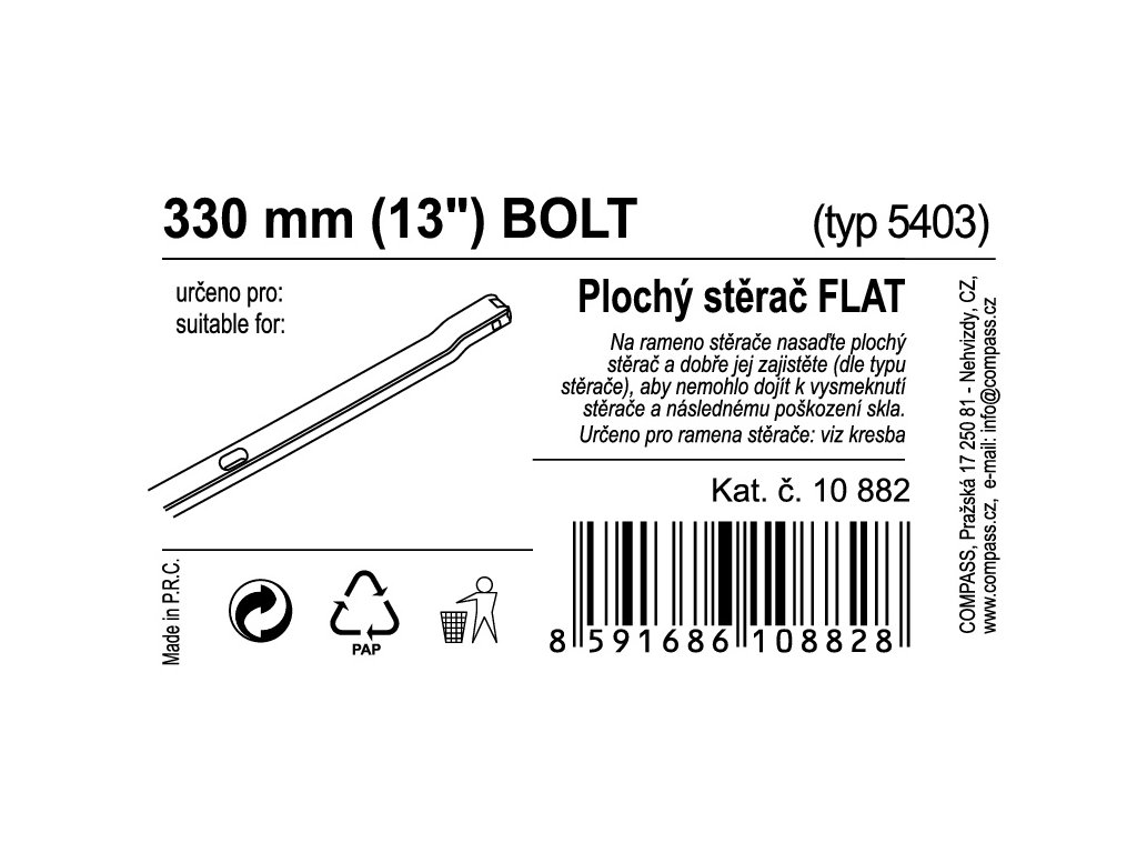 Stěrač FLAT BULK (BOLT) 13"/330mm