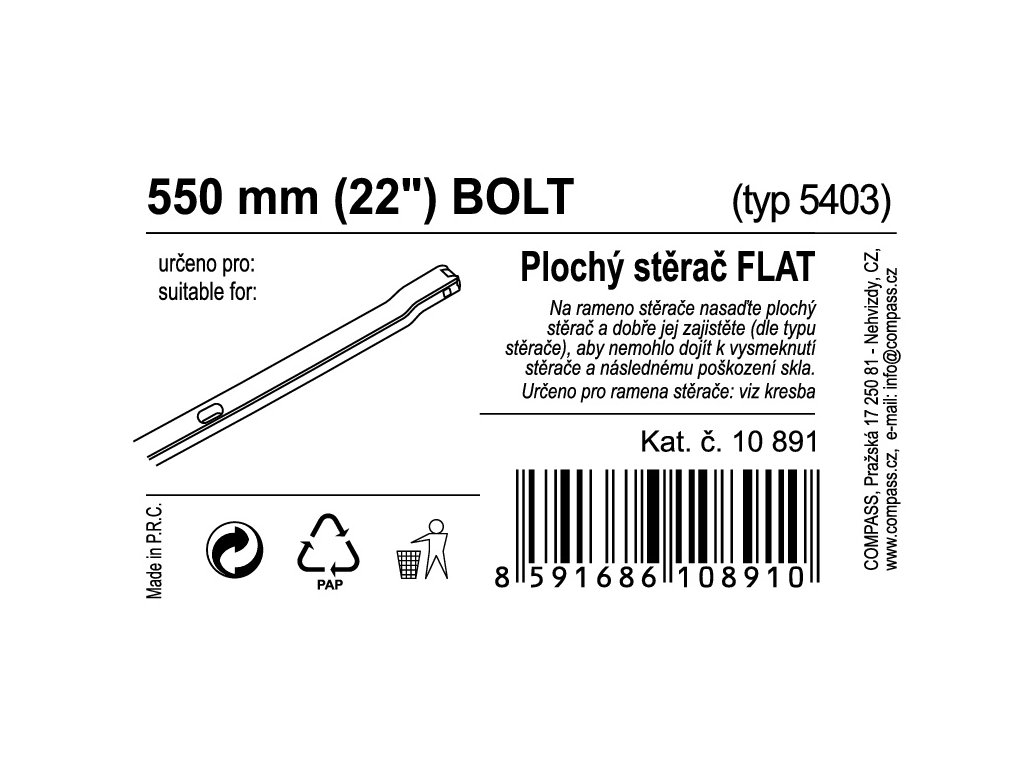 Stěrač FLAT BULK (BOLT) 22"/550mm