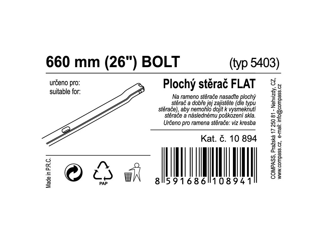 Stěrač FLAT BULK (BOLT) 26"/660mm