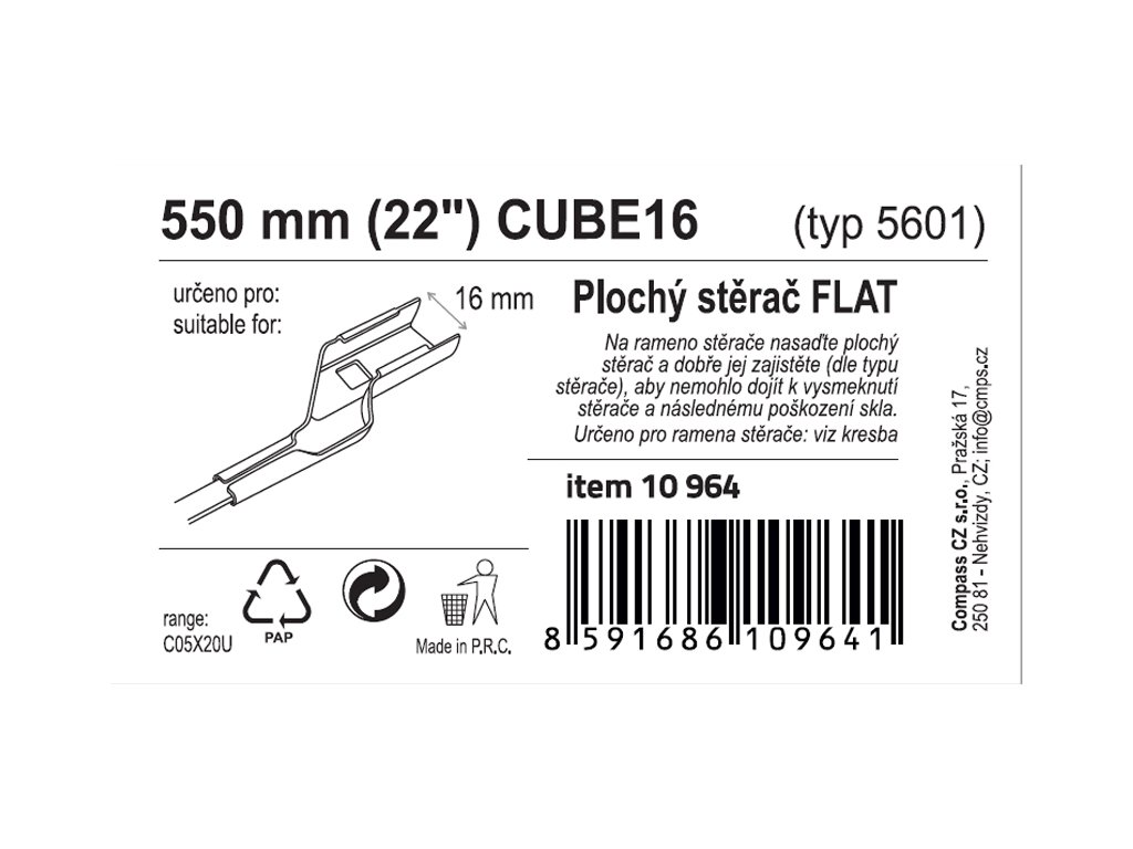 Stěrač FLAT BULK (CUBE16) 22"/550mm