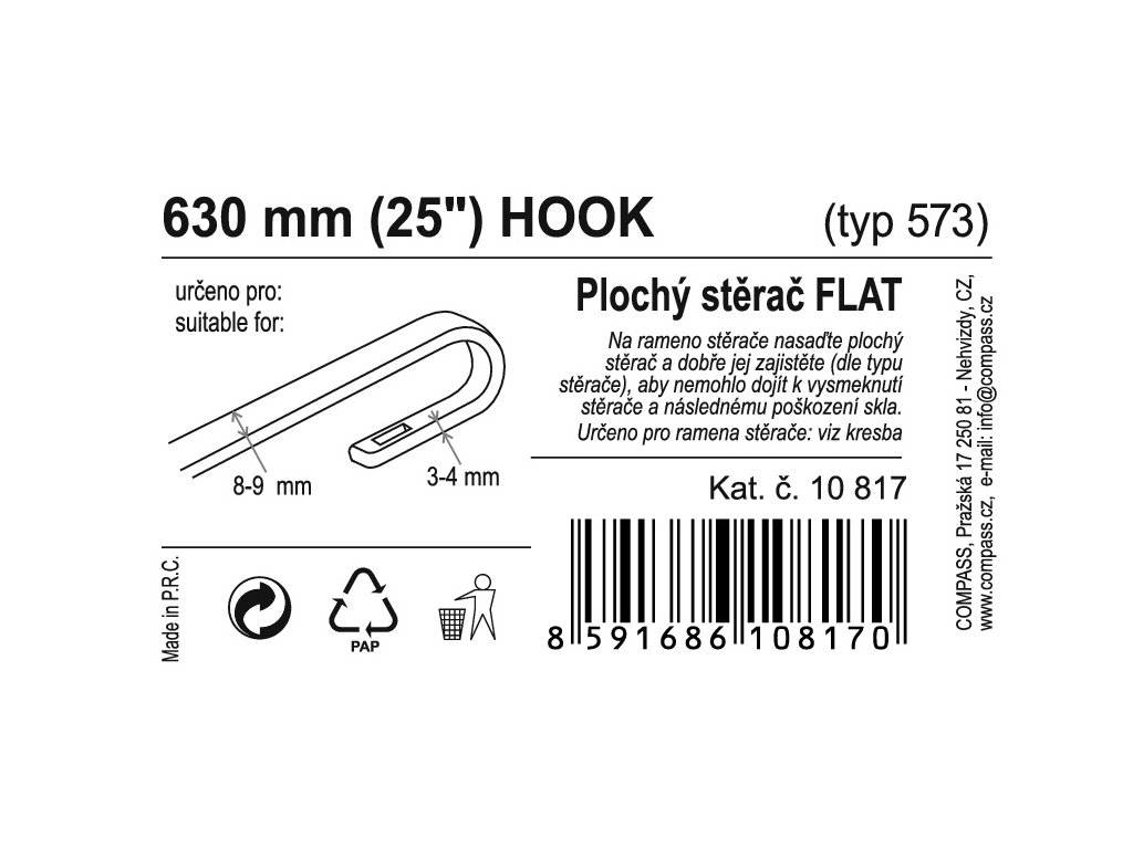 Stěrač FLAT BULK (HOOK) 25"/630mm